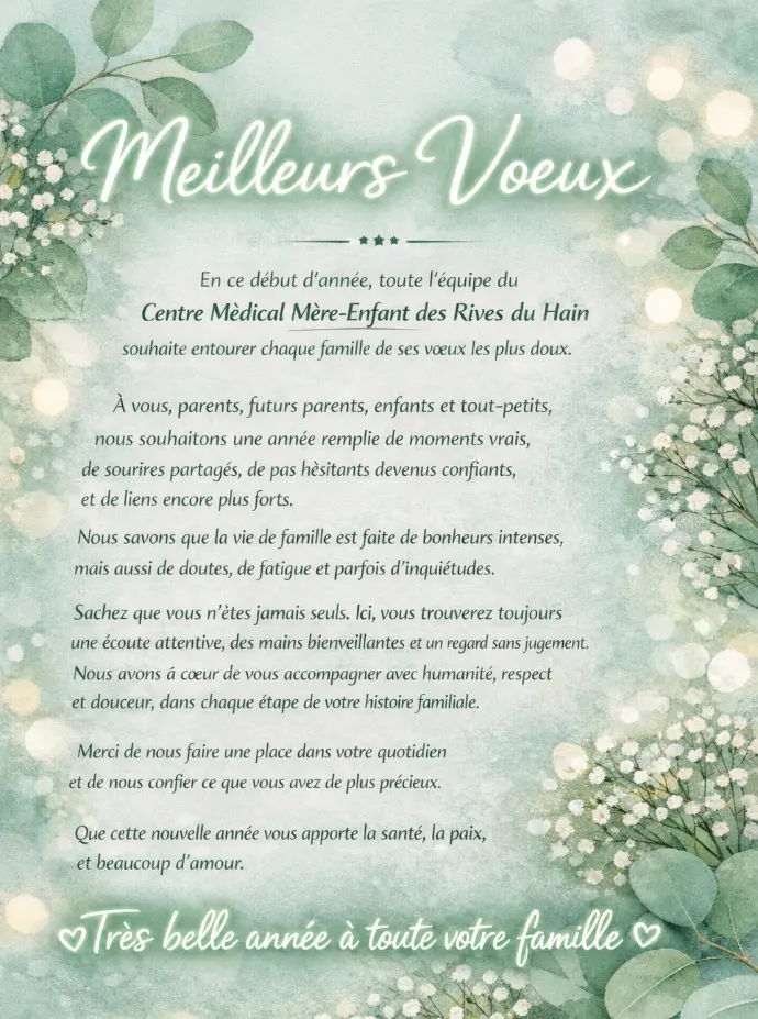 Le Centre Médical des Rives du Hain, c’est un lieu où chaque maman trouve une oreille attentive, et où chaque enfant reçoit les soins adaptés pour bien grandir, en toute sécurité.